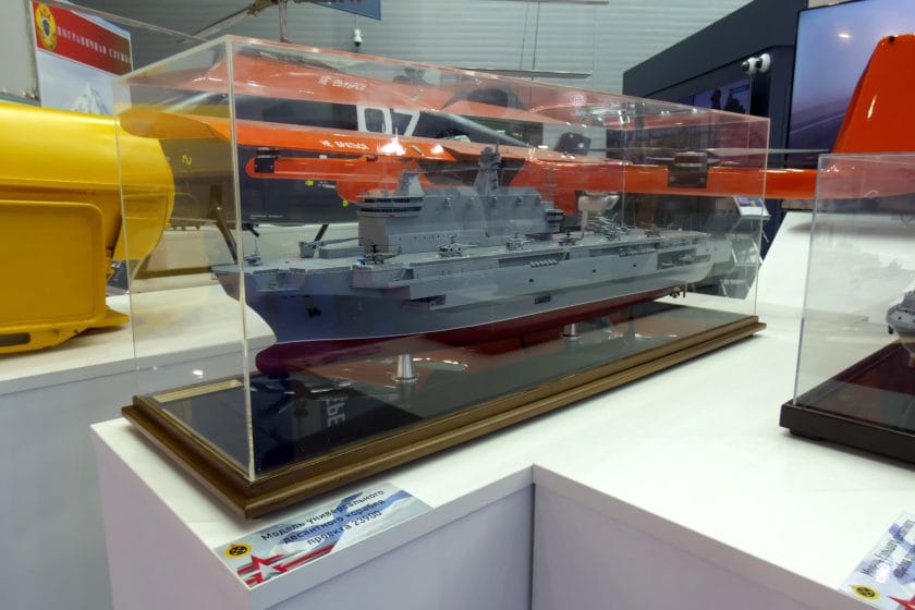 Apariția estimată a navei de asalt amfibiu a proiectului 23900 dezvoltat de Zelenodolsk Design Bureau JSC (ZPKB, ca parte a Ak Bars Shipbuilding Corporation JSC). TASS nu are confirmarea oficială a informațiilor despre contract. Serviciul de presă al uzinei Zaliv a declarat TASS că șantierul este pregătit din punct de vedere tehnic să construiască transportoare de elicoptere în interesul Marinei Ruse, dar a menționat că nu dețin informații despre acord și despre momentul începerii construcției navelor. Proiectul 23900 elaborat de ZPKB a fost prezentat public pentru prima dată în cadrul unei vizite pe 9 ianuarie 2020 a președintelui Federației Ruse, Vladimir Putin, la o expoziție dedicată perspectivelor dezvoltării Marinei Federației Ruse la Școala de Marină “PS Nakhimov” din Sevastopol Sevastopol. Conform acestor materiale, proiectul pare o clonă a navelor de asalt amfibiu de tip Mistral, comandate anterior pentru Marina Rusă în Franța, având o arhitectură și dimensiuni similare. Prezentarea navei de aasalt amfibiu Proiect 23900 (dezvoltat de Zelenodolsk Design Bureau JSC (ZPKB, ca parte a Ak Bars Shipbuilding Corporation JSC), a fost făcută președintelui Federației Ruse Vladimir Putin în expunerea din 01.09.2020 dedicată perspectivelor dezvoltării Marinei Federației Ruse în clădirea Ordinului Naval Superior al Mării Negre a Stelei Roșii a Școlii P.N. Nakhimov din Sevastopol.